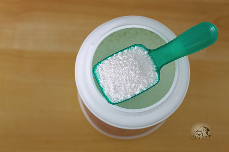 - Gépi, fehérítő mosás esetén javasolt mennyiség 60-90 C-on : a mosógép dobba, szennyes ruhanemű közé szórva 20-30 gr / 5 kg mosás .